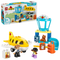 This LEGO® DUPLO® airport playset has lots of features to spark imaginary play. It includes a security desk where toddlers can pretend-play scanning the suitcase and pushing it down the chute. an air traffic control tower and a movable airplane toy that fits the teddy. child and pilot figures.