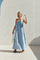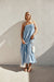 The perfect look for a long lunch with friends. the Ada Dress is made from a high quality viscose blend slub fabric in a blue hue. It features thin adjustable bind straps. straight neckline. pin tuck details across bust and back. twin pockets and a flouncy maxi dress. Keep it casual with the Kia Sandals! Designed exclusively by Sabo.