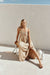 The perfect look for a long lunch with friends. the Ada Dress is made from a high quality viscose blend slub fabric in a tan hue. It features thin adjustable bind straps. straight neckline. pin tuck details across bodice. twin pockets and a flouncy maxi hem. Dress it up with the Tamia Heels. Designed exclusively by Sabo.
